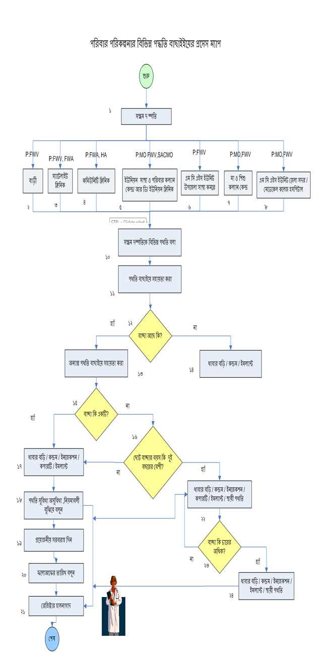 পরিবার পরিকল্পনার বিভিন্ন পদ্ধতি বাছাইয়ের প্রসেস ম্যাপ