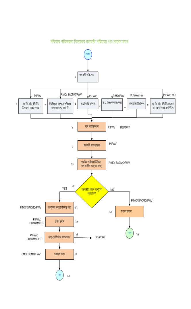পরিবার পরিকল্পনা বিভাগের গর্ভবতী পরিচর্যা এর প্রসেস ম্যাপ